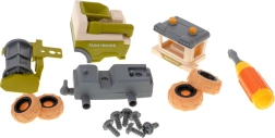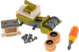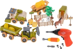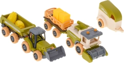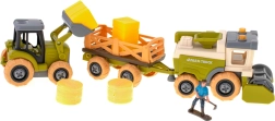 Le tracteur, la moissonneuse-batteuse et les remorques peuvent être facilement démontés et remontés à l'aide du tournevis et de la perceuse sans fil. Les enfants entraînent leur motricité fine et comprennent les principes de base de la construction des machines.