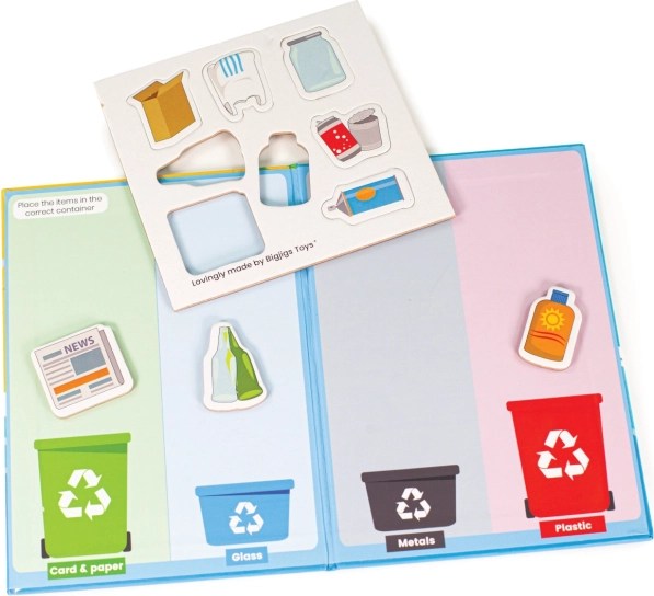 Les panneaux magnétiques à fermeture et les éléments thématiques aident les enfants à comprendre le recyclage et la protection de la nature. Le jeu développe le sens des responsabilités ainsi que des compétences pratiques.