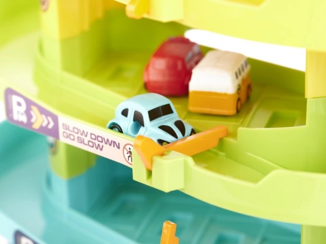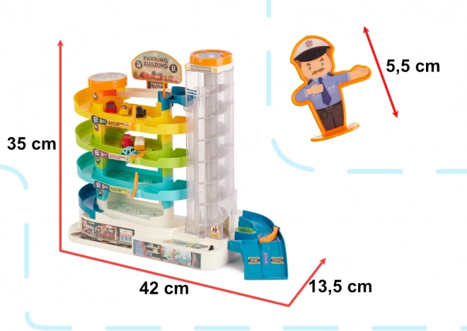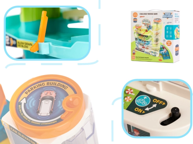 Garage de stationnement à 4 étages avec ascenseur électrique et 6 petites voitures
