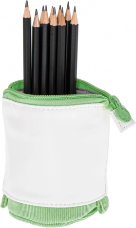 Trousse scolaire 2-en-1 pratique de couleur verte, qui se transforme d’un seul geste en organiseur de bureau. Offre un espace généreux pour les fournitures, un tissu résistant et une fermeture éclair sécurisée pour une utilisation quotidienne à l’école, à l’université ou au bureau.