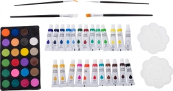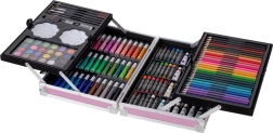 - 33× feutre, 28× crayon de couleur, 4× pinceau, 2× crayon, 2× gomme, 2× palette en plastique, 1× taille-crayon, palette de 24 aquarelles, 24× peinture en tube, 24× pastel à l’huile, mallette