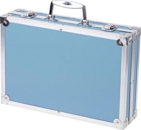 Mallette métal-plastique avec poignée robuste et loquets sûrs gardant tout bien en place. Se transporte facilement à l’école, au club ou en vacances.