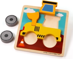 Puzzle à encastrer pour tout-petits avec motif de pelleteuse, fabriqué à partir de matériaux de haute qualité et approvisionnés de manière responsable. Excellent outil pour le développement de la motricité fine, de la pensée logique et de la reconnaissance des formes et des couleurs.