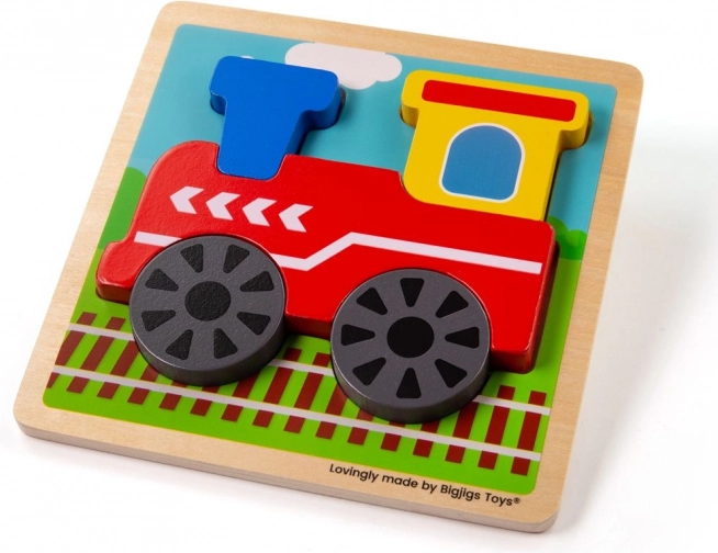 Premier puzzle en bois idéal pour les tout-petits. Les grandes pièces formant le train aident à développer la motricité fine et la pensée logique.