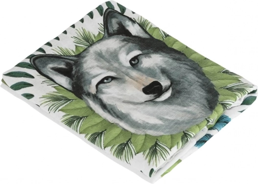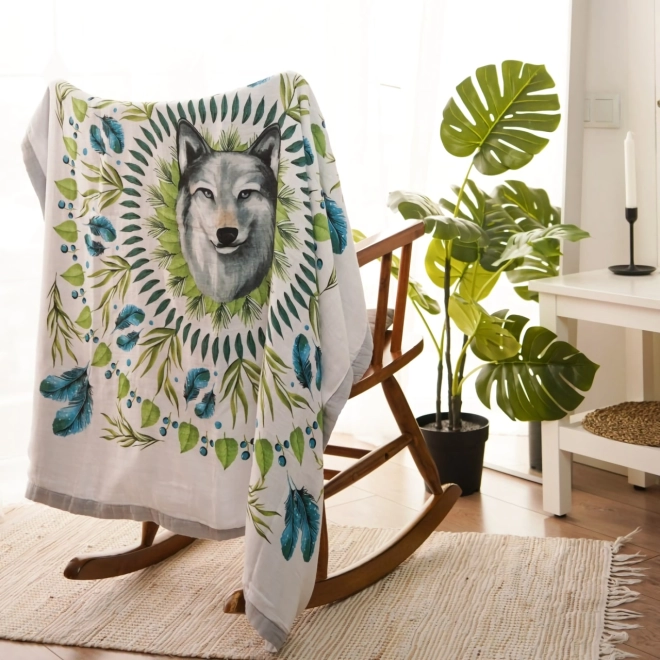 Le beau motif de loup entouré de feuilles vertes et de plumes bleues éveille le courage. Un élément décoratif qui donne un aspect unique à l'environnement.
