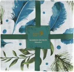 Habillez votre bébé avec confort et douceur. Cette couverture en mousseline de bambou est conçue pour un confort maximal avec un magnifique motif de plumes et de feuilles. Fabriquée à 70% de bambou et 30% de coton, elle est idéale pour les journées chaudes grâce à sa respirabilité et à sa sensation de fraîcheur.