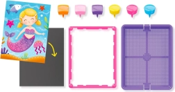 Le set contient tout le nécessaire : une plaque perforée résistante, un cadre pour un assemblage confortable et un panier de rangement pour mettre facilement à l’abri les 300 chevilles colorées. Idéal pour les créations à la maison ou comme cadeau pour de petits artistes.