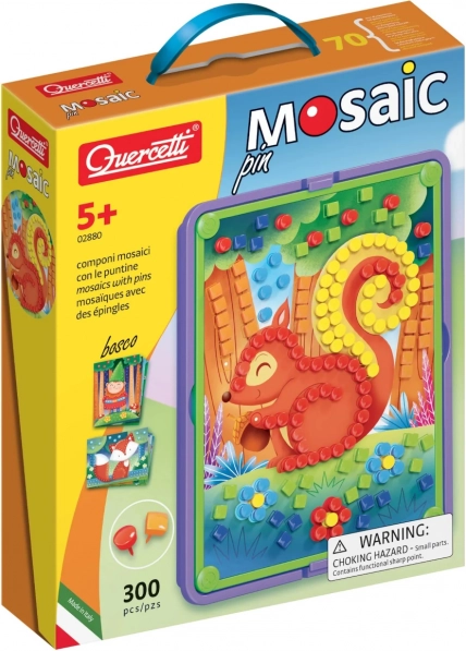 Découvrez le plaisir créatif avec la mosaïque Quercetti Pin Bosco, qui aide les enfants à développer la motricité fine, la coordination œil–main et la pensée créative. Le set comprend 8 cartes imprimées avec des motifs forestiers, 300 chevilles colorées en 2 formes et 6 couleurs, une plaque perforée solide, un cadre avec poignée et un panier de rangement pratique pour un rangement facile.