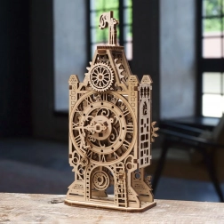 Ce kit mécanique 3D, précisément travaillé en contreplaqué naturel, est non seulement décoratif mais aussi éducatif. En tournant la grande roue, vous mettez en marche la transmission asynchrone des aiguilles, le pendule, la girouette ainsi que d’autres détails architecturaux. Une mécanique bien pensée offre un mouvement fluide et montre clairement le fonctionnement des mécanismes d’horlogerie de base.
