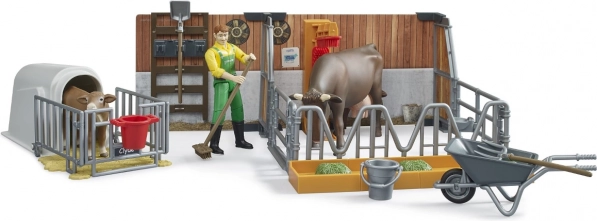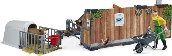 Le set contient des figurines détaillées du fermier, de la vache et du veau, permettant aux enfants d'imiter la vie de ferme de manière réaliste.