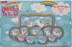 Adorable service à thé sur le thème de la licorne qui ravira les petites hôtesses et les petits hôtes. Il comprend 15 pièces en métal résistant – tasses, sous-tasses, assiettes, théière avec couvercle et un plateau de service 24 × 16 cm. Idéal pour les thés imaginaires et pour développer la créativité ainsi que les compétences sociales. Convient aux enfants à partir de 3 ans.