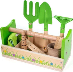 Ce set de jardinage coloré développe l’adresse, la patience et le lien avec la nature. Le tout est rangé dans une caisse en bois solide au design vert frais avec des coccinelles et des fleurs. Les enfants peuvent planter, aérer ou mesurer en toute sécurité tout en imitant les adultes.