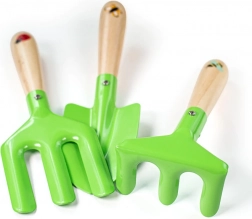 Chaque pièce est pensée pour les petites mains : les poignées en bois lisses tiennent agréablement en main, les parties métalliques sont résistantes et les gants en tissu protègent pendant l’activité. Le set est parfait pour jouer au jardin comme dans le bac à sable, et grâce à son emballage compact, tout est toujours à portée de main.