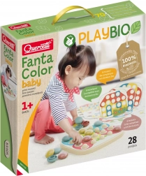 La mosaïque Quercetti FantaColor Baby fait partie de la gamme PlayBio, ce qui signifie qu'elle est fabriquée à partir de 100% de matériaux recyclés, écologiques et respectueux de la nature. Elle contient 28 pièces, y compris un plateau perforé et 21 chevilles colorées qui s'emboîtent facilement. Jouer avec cette mosaïque favorise :