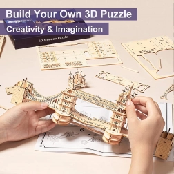 Construisez l’emblématique Tower Bridge sous forme de modèle en bois détaillé avec éclairage LED. Vous attendent 113 pièces découpées avec précision, une difficulté moyenne et un montage ludique d’environ 1,5 heure. Le modèle terminé brille joliment et devient une décoration élégante pour la chambre ou le bureau.
