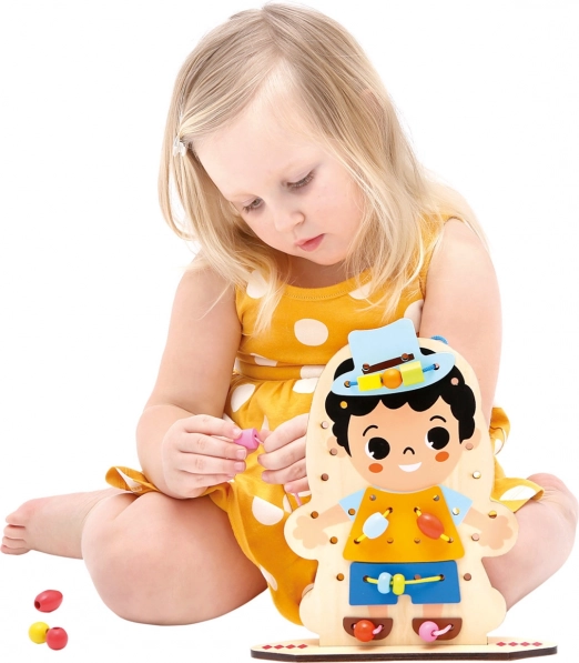 Découvrez un jeu d’enfilage créatif en bois qui divertit les enfants pendant des heures tout en développant leurs compétences. Une planche imprimée recto verso avec un personnage et un riche ensemble d’accessoires stimulent la motricité fine, la coordination œil–main et la créativité. Grâce à 60 pièces, les enfants exercent leur patience, leur pensée logique et apprennent la résolution de problèmes en jouant.