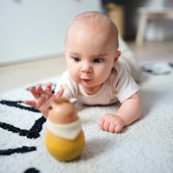 Jouet interactif avec un grelot à l’intérieur qui stimule la perception auditive à chaque mouvement. Le mécanisme auto-redressant développe les compétences motrices.