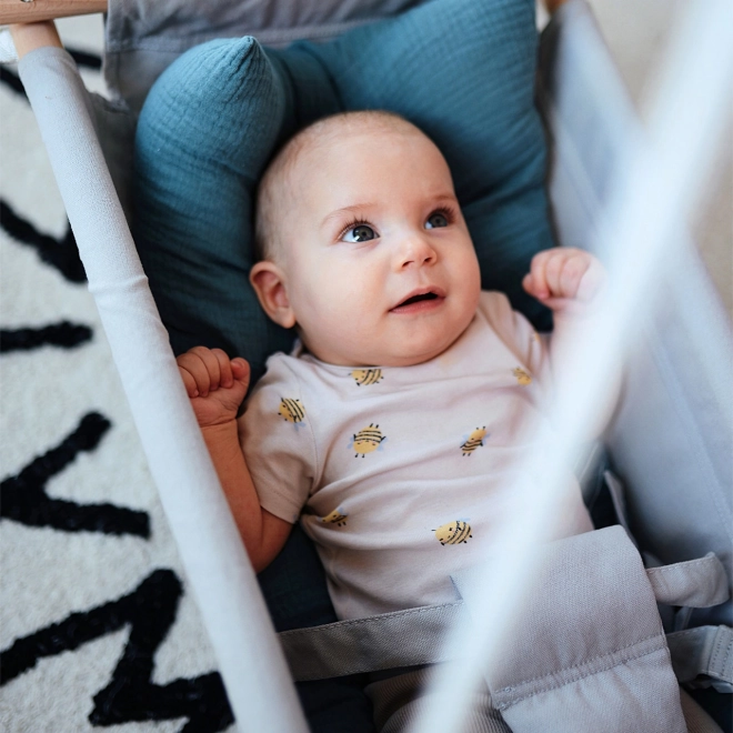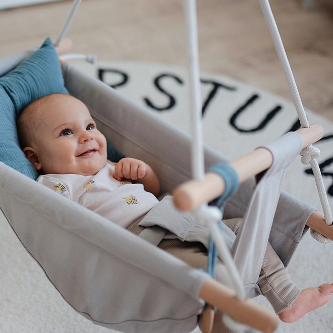 La balançoire pour les plus petits Mer offre un confort exceptionnel pour votre enfant. Elle est équipée d'un coussin moelleux et amovible, fixé à l'aide de boucles, et d'une ceinture à trois points pour une sécurité maximale. Le design en couleur bleu fumé en parfaite harmonie avec le bois massif soigneusement travaillé ajoute du charme à chaque pièce ou jardin.