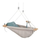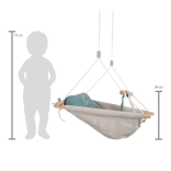 Le tissu de la zone d'assise s'adapte de manière optimale à la forme du corps de l'enfant et est facile à entretenir. La structure en bois est réalisée avec des matériaux naturels de qualité qui mettent l'accent sur l'écologie et la sécurité. La capacité de charge de la balançoire est jusqu'à 30 kg, assurant une utilisation durable.