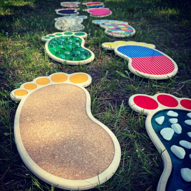 L'ensemble de pistes et cercles sensoriels est conçu pour être robuste et durable, idéal pour une utilisation quotidienne. Des designs colorés et créatifs ajoutent une esthétique à votre espace et peuvent également être utilisés pour diverses activités. Des organisateurs en bois élégants et solides permettent un rangement facile de l'ensemble.