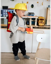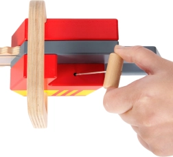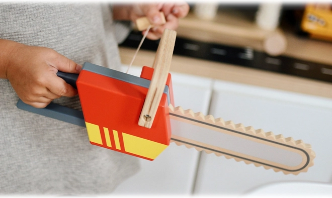 Cette tronçonneuse pour enfants de haute qualité en bois allie fabrication durable et design sûr pour un usage quotidien. Les éléments rouges et jaunes marqués, associés à une forme réaliste de tronçonneuse, stimulent l’imagination et développent le jeu de rôle ainsi que la motricité fine.