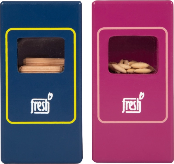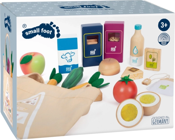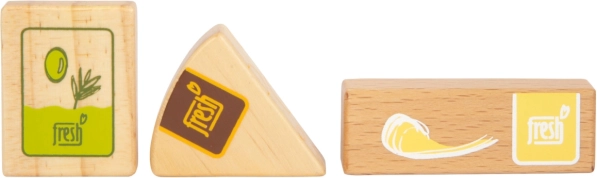 Le set de produits végétariens Fresh apporte aux enfants tout ce dont ils ont besoin pour des jeux de cuisine et de magasin créatifs. Les pièces en bois comme le lait, le beurre, le fromage, l’huile, les œufs, le riz, les pâtes, les produits de boulangerie, la pomme, la tomate, le concombre et la carotte sont complétées par une bouteille d’eau et un sachet de thé. Des détails réalistes, y compris une fenêtre transparente sur les emballages de riz et de pâtes (ils émettent un son lorsqu’on les secoue), augmentent l’attrait et l’authenticité du jeu.
