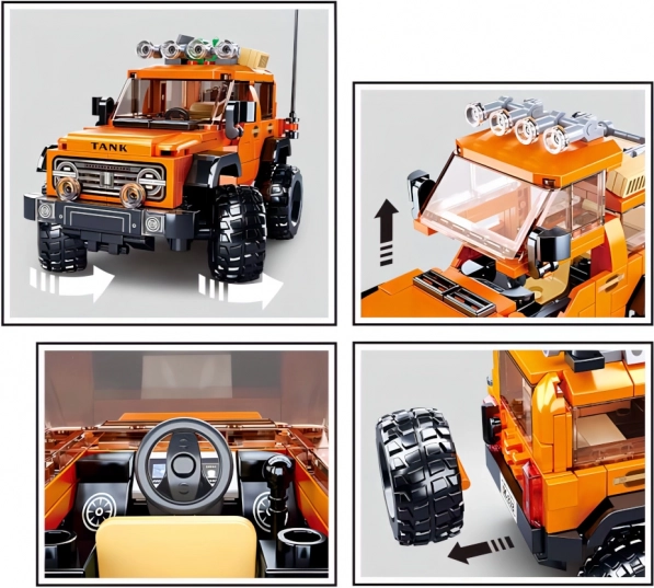 Découvrez le plaisir de construire avec ce véhicule tout-terrain inspiré des SUV américains. Le modèle orange et noir, doté de roues massives, d’un porte-bagages de toit et d’une calandre détaillée, est idéal pour des scénarios d’action ou pour l’exposition sur une étagère. Grâce au plastique ABS robuste, le kit est durable et sûr.