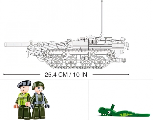 Une fois monté, le char atteint une longueur de 25,4 cm et a fière allure aussi bien sur une étagère qu’en jeu d’action. Les figurines disposent de parties pivotantes et oscillantes, stimulant l’imagination et le jeu dynamique. Le kit est entièrement compatible avec les briques d’autres marques, ce qui vous permet d’étendre aisément vos constructions.