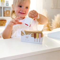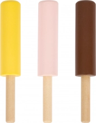 Small foot apporte aux enfants du divertissement avec des glaces en bois réalistes, parfait complément pour les stands de vente et cuisines pour enfants. Cet ensemble comprend trois glaces aux saveurs préférées — fraise, vanille et chocolat. Les enfants peuvent se réjouir d’un amusement durable tout en apprenant grâce au jeu interactif.