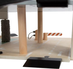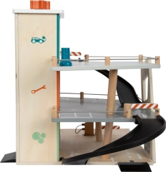 Découvrez un parking en bois polyvalent à trois étages, avec un ascenseur fonctionnel et des rampes fluides pour des heures de jeu créatif. Inclus: 2 petites voitures, station-service et borne de recharge, rampe élévatrice et station de lavage avec brosses réalistes. Des barrières mécaniques à chaque niveau et un garde-corps en caoutchouc pour une conduite sûre dynamisent le jeu. La combinaison robuste de contreplaqué, bois massif et plastique non nocif garantit une longue durée de vie.