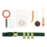 Partez pour des aventures inoubliables avec une ceinture pleine d’équipement. Les enfants seront ravis de cette sangle robuste qui inclut un sifflet en bois, une loupe, une pince, une boussole, une corde et une pochette en tissu. Le tout se fixe facilement grâce à des œillets et des mousquetons.