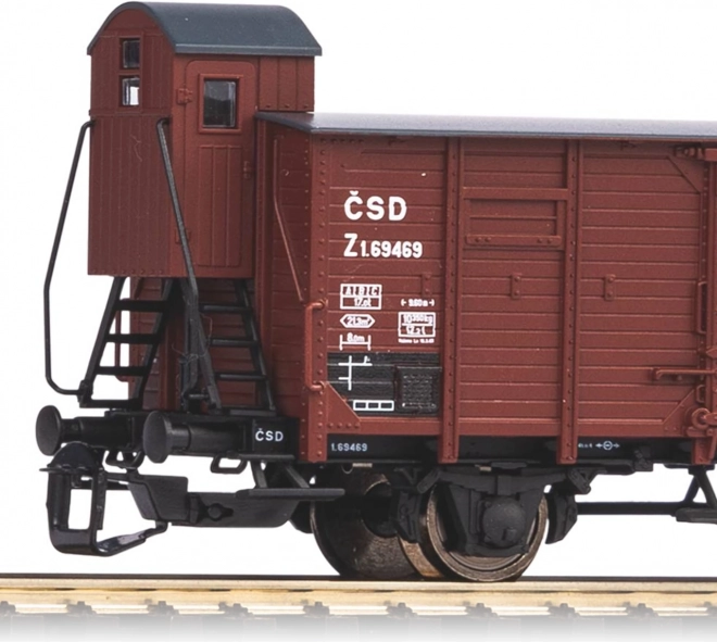 Le modèle de wagon couvert G02 avec cabine de serre-frein à l’échelle TT de la marque Piko est une reproduction fidèle des wagons ČSD de l’époque III. Il se distingue par une impression de grande précision, un détail soigné des portes et du lambrissage en bois ainsi qu’un roulement fluide des bogies. Idéal pour composer des rames thématiques ČSD et enrichir un réseau avec un wagon de fret authentique.