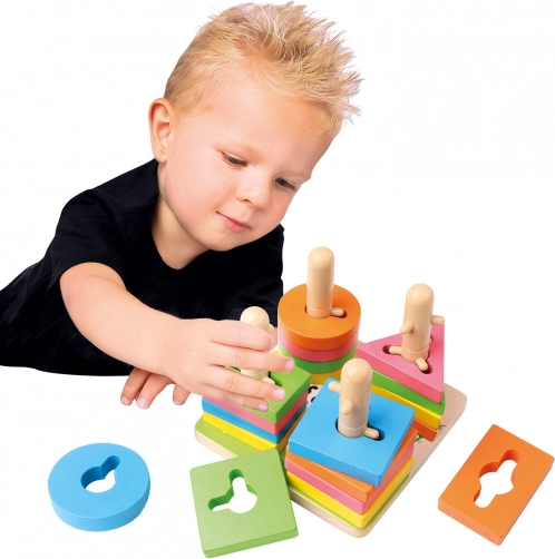 Le jouet est idéal pour un premier pas vers la pensée logique : les enfants doivent aligner les découpes et enfiler correctement les formes. La conception en bois durable et les bords lisses offrent sécurité et longue durée de vie. Parfait pour le jeu autonome comme pour l’apprentissage partagé avec les parents.
