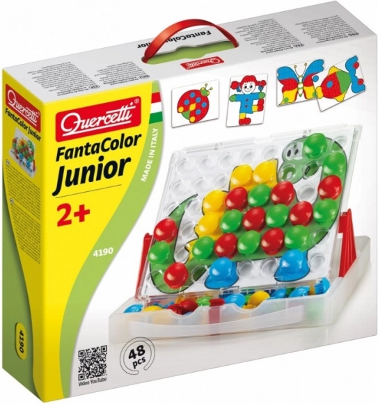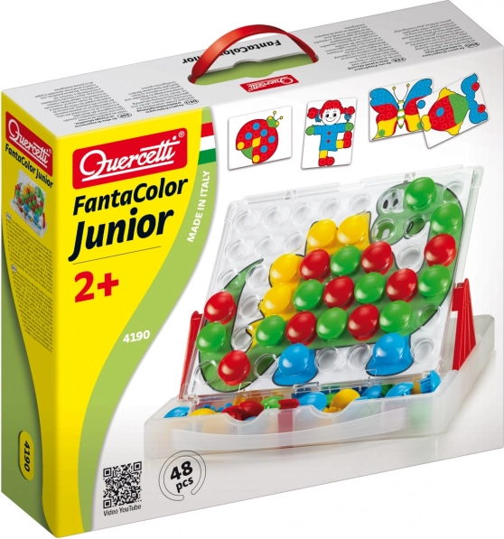 Découvrez la mosaïque créative QUERCETTI FANTACOLOR JUNIOR, qui développe l’imagination des enfants ainsi que leur motricité fine. Grâce aux grands pions, les enfants manipulent facilement les pièces, la mallette pratique garde tout ensemble et 8 modèles recto verso inspirent à créer. Le jouet favorise la reconnaissance des couleurs, la coordination œil–main, la concentration et la patience.