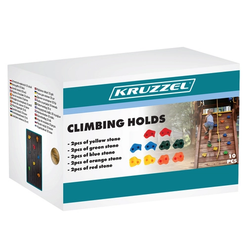 Les prises KRUZZEL se montent avec 2 vis, ce qui empêche leur rotation et augmente la sécurité à l’usage. La surface texturée antidérapante assure de la confiance pour les mains comme pour les pieds. Les formes et tailles variées permettent plus d’options de préhension selon la manière de tirer. Parfait pour construire des murs d’escalade, des échelles, des tours et d’autres structures.