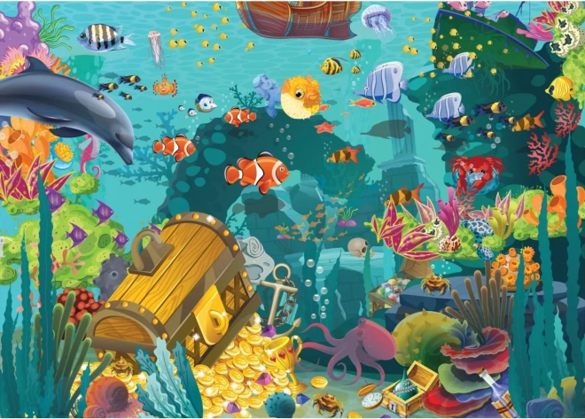 Le motif « Underwater Treasure » vous emmène vers un coffre au trésor immergé au cœur d’un récif corallien haut en couleurs. Grâce à l’impression de haute qualité et à la surface mate, même les détails les plus fins restent nets sans reflets gênants. Les pièces découpées aléatoirement offrent des formes variées et un défi ludique – chaque pièce est unique.