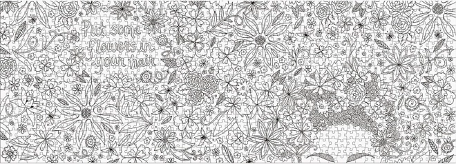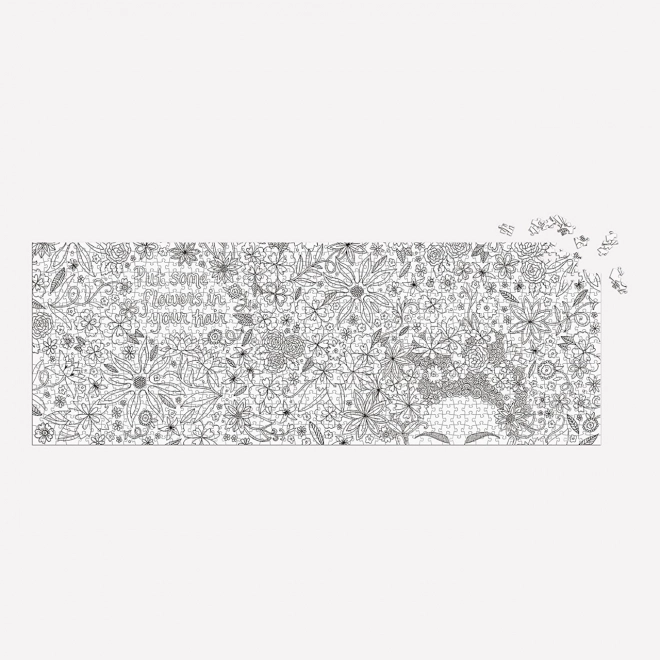 Le puzzle panoramique I Love My Hair allie le plaisir de l’assemblage à la créativité du coloriage. Le motif noir et blanc, parsemé de fleurs et d’ornements capillaires, invite à exprimer votre imagination – crayons ou feutres transformeront l’image en une décoration unique.