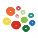 Disques colorés, base/boîte, trois tiges
