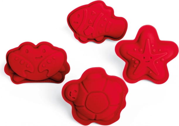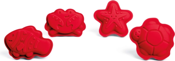 - Le set comprend quatre moules en forme d’animaux marins : étoile de mer, crabe, poisson et tortue.