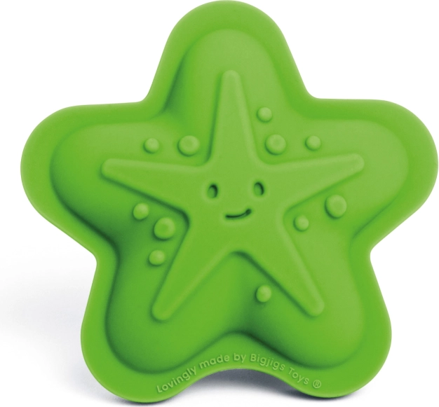 Découvrez un ensemble ludique de quatre moules 100 % silicone en coloris vert Meadow de BIGJIGS TOYS. Les enfants créeront de superbes sculptures de sable sur le thème marin – étoile de mer, crabe, poisson et tortue. Les moules sont résistants à la chaleur et aux taches, agréablement souples et sûrs pour les petites mains. Après le jeu, rangez-les simplement dans le pochon en coton inclus.