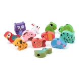 Le jeu d'enfilage favorise la créativité et la motricité fine lorsque les enfants enfilent les perles animales sur la ficelle.