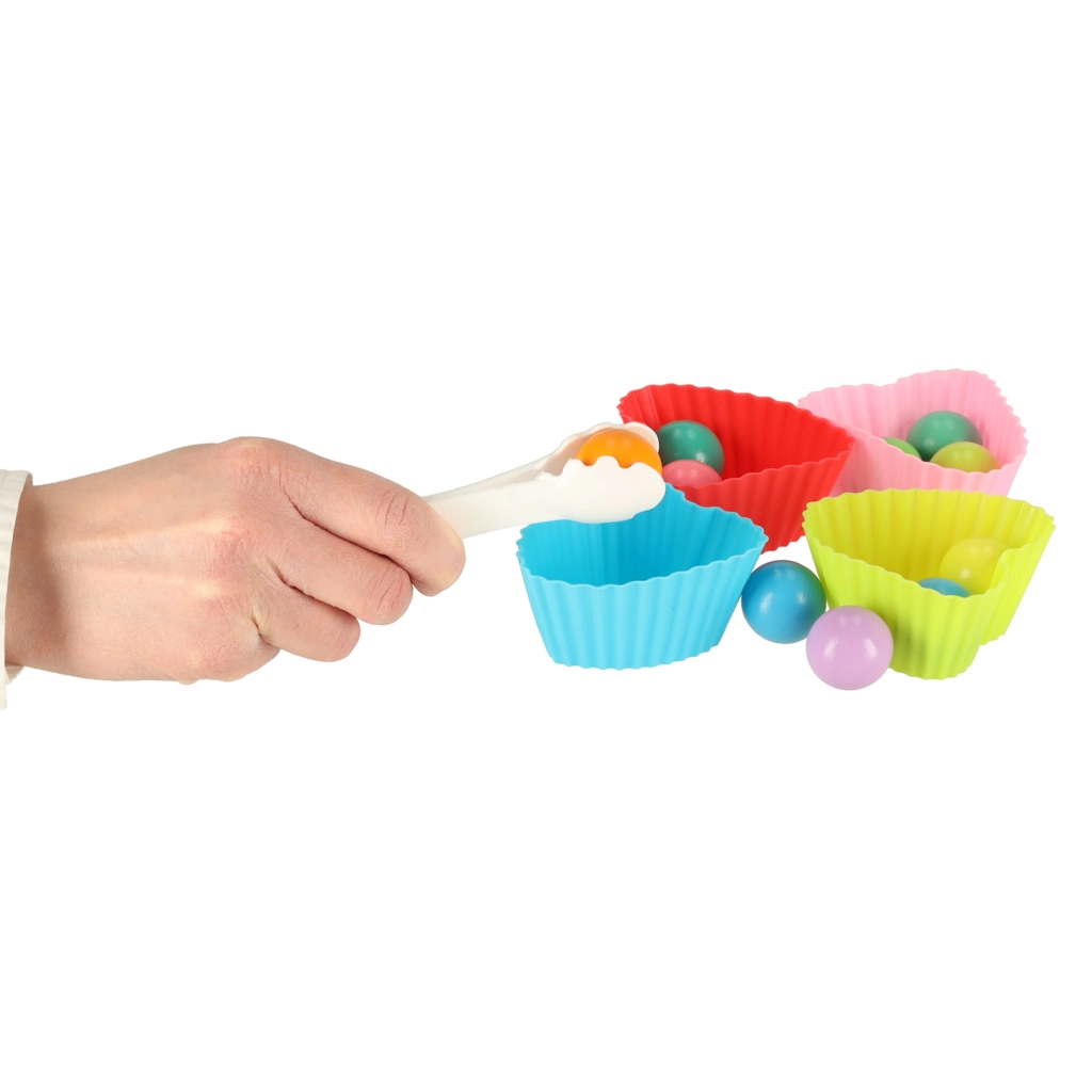 - Activités variées : pêche magnétique, capture de chenilles, tri dans des coupelles en silicone, transport à la pince, déplacement sur le plateau de jeu.