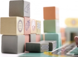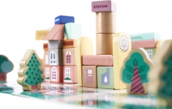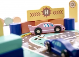 Chaque ville a besoin de rues et de voitures, et cet ensemble contient des puzzles qui, une fois assemblés, créent une surface de jeu avec une piste. Vous y trouverez divers éléments tels que des bâtiments, des personnages et des véhicules. Les blocs sont en couleurs pastel, ce qui stimule non seulement la perception visuelle de l'enfant, mais aussi sa pensée logique et non conventionnelle.