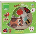 Découvrez les possibilités créatives avec les magnets en bois Vilac à thème jardin. Ces pièces robustes et écologiquement fabriquées offrent des possibilités illimitées pour des jeux et des décorations. Profitez de belles illustrations colorées qui peuvent décorer le réfrigérateur ou la chambre des enfants.