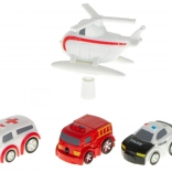 Comprend trois véhicules : ambulance, camion de pompiers et voiture de police, permettant de simuler diverses missions de sauvetage et scénarios dynamiques.