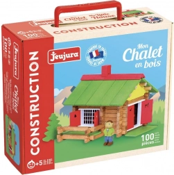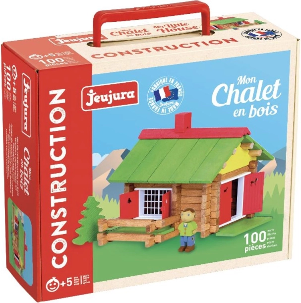 Un jeu de construction en bois inspiré des chalets alpins ravira chaque petit bâtisseur et deviendra un bel élément de la chambre d’enfant. Les constructions Jeujura ont une longue tradition et comptent parmi les jouets classiques français. La gamme propose des séries dédiées aux chalets, maisons et fermes, mais aussi au Far West et au Moyen Âge. Elles peuvent être librement combinées entre elles et, pour beaucoup, des accessoires, figurines et véhicules sont également proposés. Elles sont fabriquées en France, en bois massif de hêtre et de pin d’origine française. Les éléments des constructions sont traités exclusivement avec des peintures et vernis à base d’eau. Chaque set est emballé dans une valisette en carton pratique imprimée avec des encres végétales et un mode d’emploi facile à comprendre est inclus. Principales caractéristiques : 100 pièces en bois massif avec base, emballage pratique, fabriqué en France