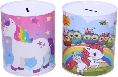 Cette tirelire en métal au motif licorne est idéale pour les enfants qui veulent commencer à économiser pour leur jouet préféré. Elle se distingue par un design décoratif et une fente pratique sur le dessus pour insérer les pièces.