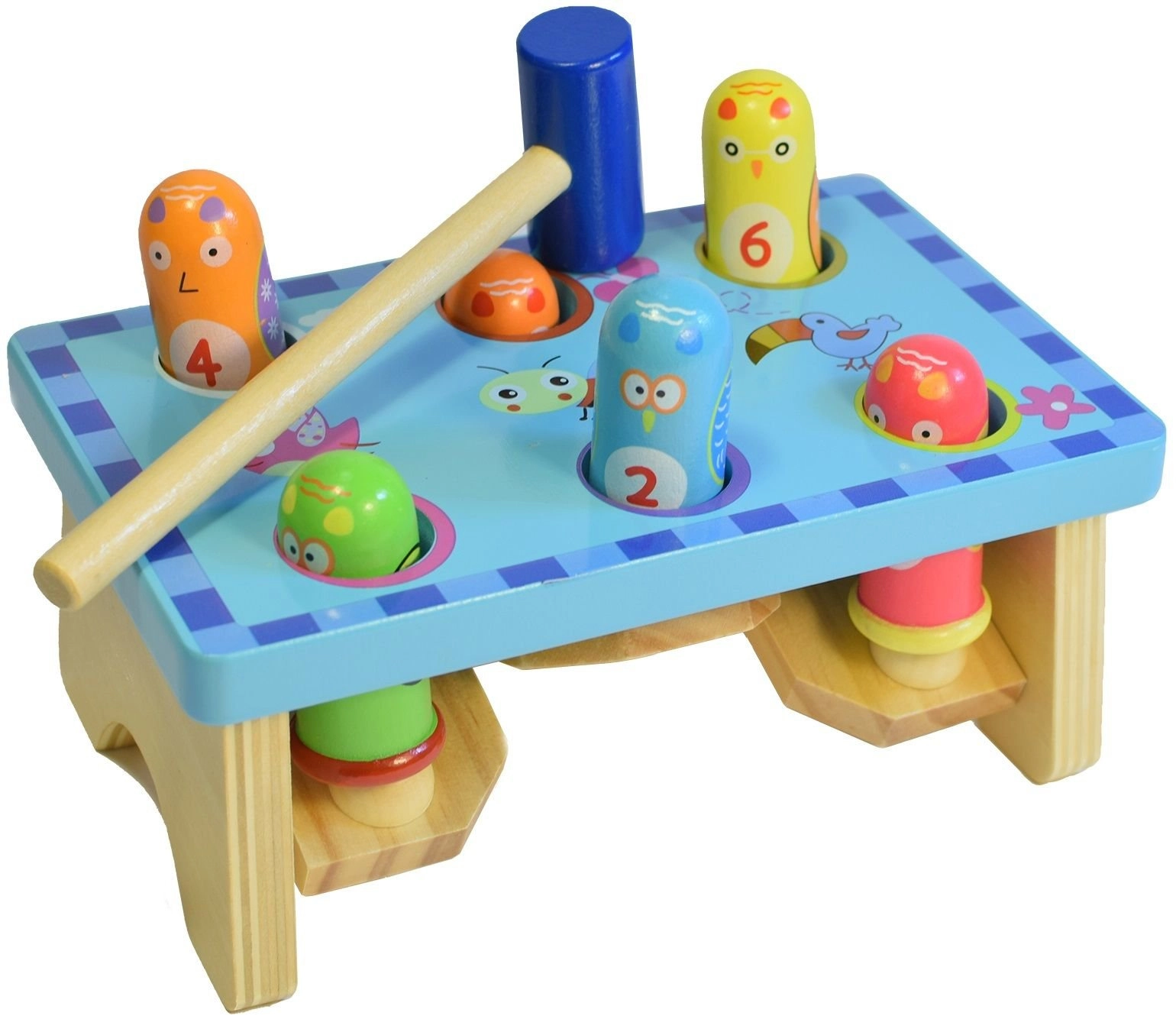 Grâce à sa fabrication solide et à son marteau ergonomique, les enfants exercent leur motricité fine, leur coordination des mouvements et leur patience. Les chevilles colorées et numérotées aident à reconnaître les couleurs et à compter, pour un apprentissage naturellement intégré au jeu.