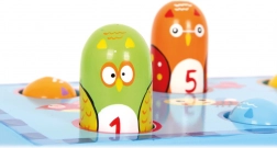 • Un mécanisme simple où l'enfant tape sur les oiseaux d'un côté et ils ressortent de l'autre.