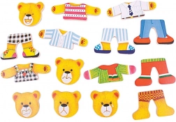 Habillez Monsieur Ours, Madame Ourse et leurs deux oursons avec une multitude de tenues et explorez les émotions grâce aux têtes interchangeables aux expressions variées. Les pièces en bois sont agréables en main, faciles à assembler et encouragent le jeu créatif ainsi que l’apprentissage par le plaisir.